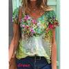 Удобная женская блузка с V-образным вырезом и коротким рукавом, повседневная футболка с цветочным принтом, туника