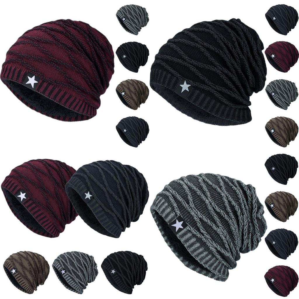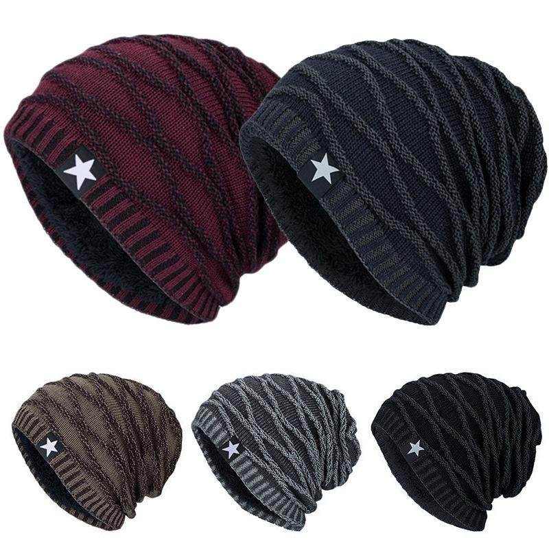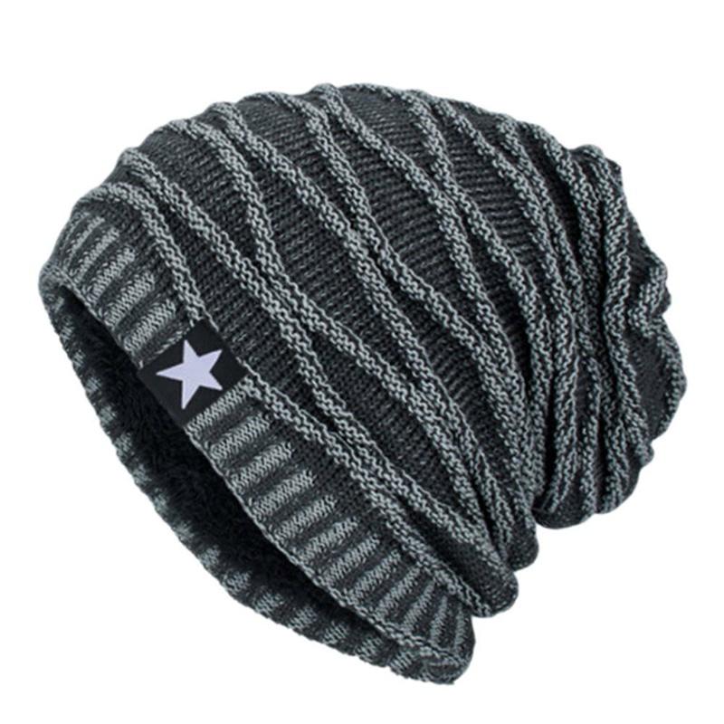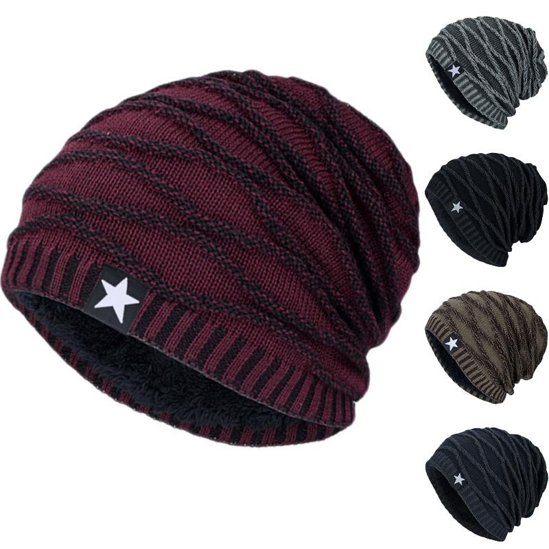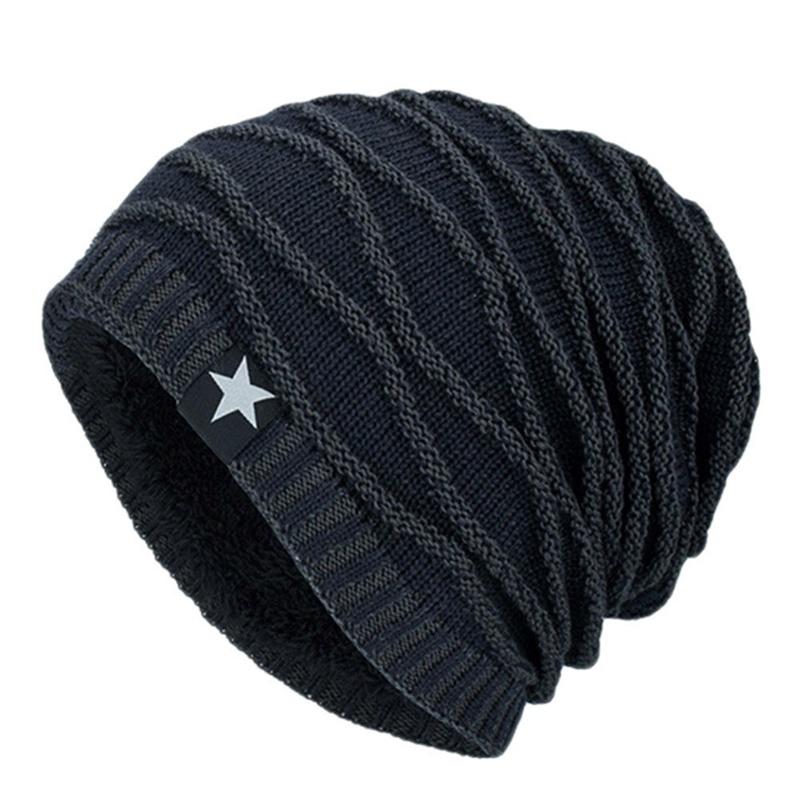 Уютная вязаная шапка-бини с отворотом для мужчин и женщин с теплой термофлисовой подкладкой