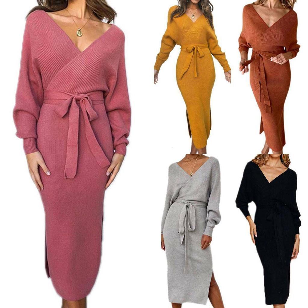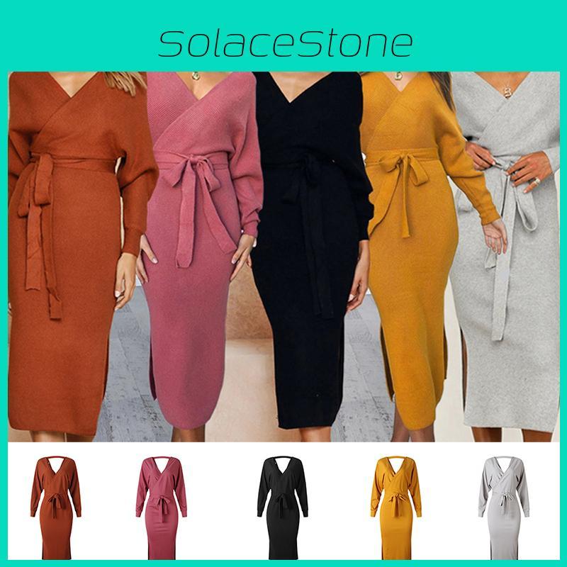 3. Платье-пуловер в стиле пуловер с поясом разработано с приятными деталями, такими как глубокий V-образный вырез, длинный рукав, сексуальный разделенный подол, дизайн без спинки и другие, что делает его стильным и шикарным.