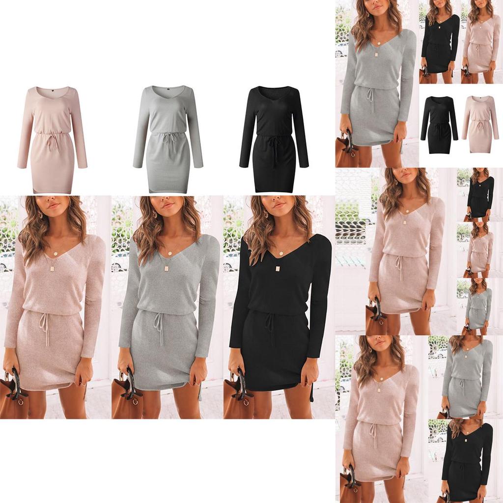 Уютный женский вязаный джемпер-платье с глубоким V-образным вырезом для осени и зимы