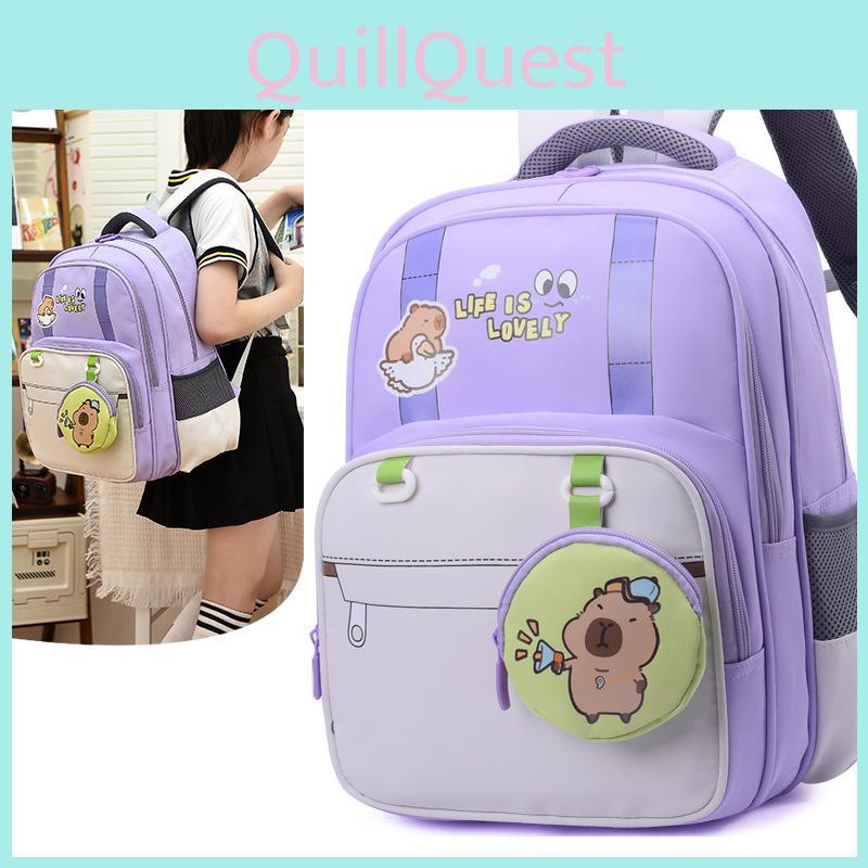 Childrens Oxford Fabric Backpack With Cartoon Capybara Printed For School Use