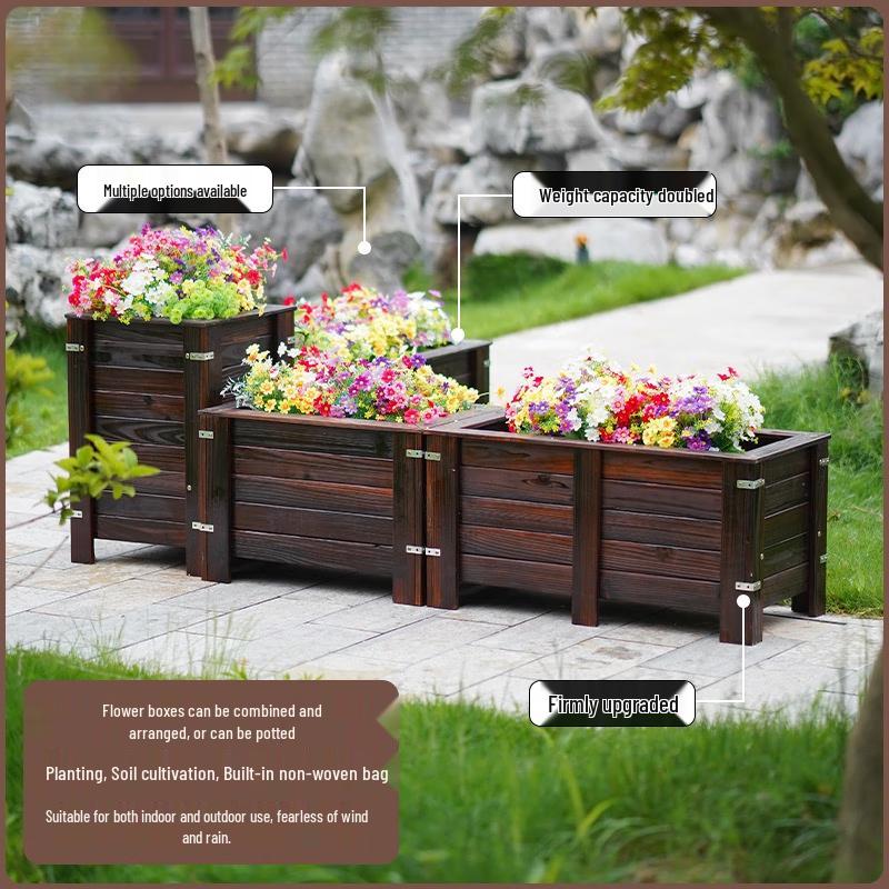 Hualongdun Carbonized Solid Wood Outdoor Planter Box