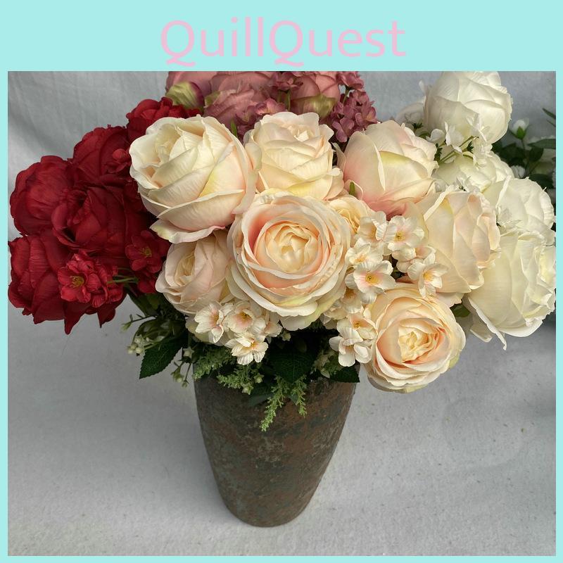 This velvet rose bouquet features realistic flower props crafted from high-quality synthetic materials, offering lifelike appearance and durability. The bouquet measures approximately 12 inches in height and is available in various colors including dark red, white, blush, pink, ivory, champagne, and purple. Ideal for wedding hall decor or event arrangements, it enhances spaces with elegant floral accents. Maintenance involves gently wiping with a soft cloth to preserve its appearance.