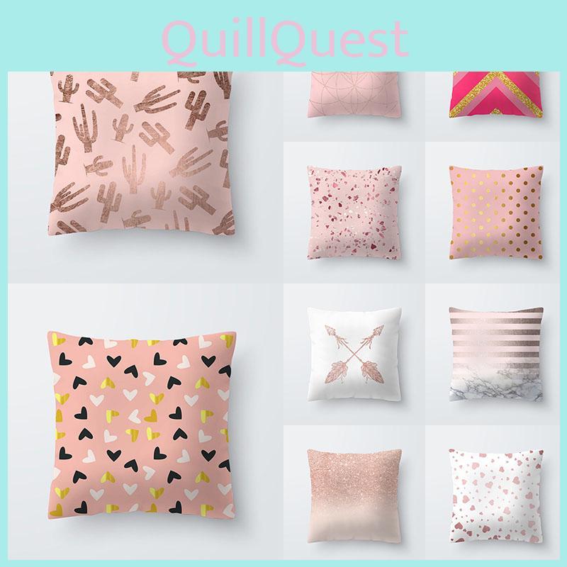 Luxurious Polyester Pillow Case Cover With Rose Gold Geometric Pattern For Home Decor