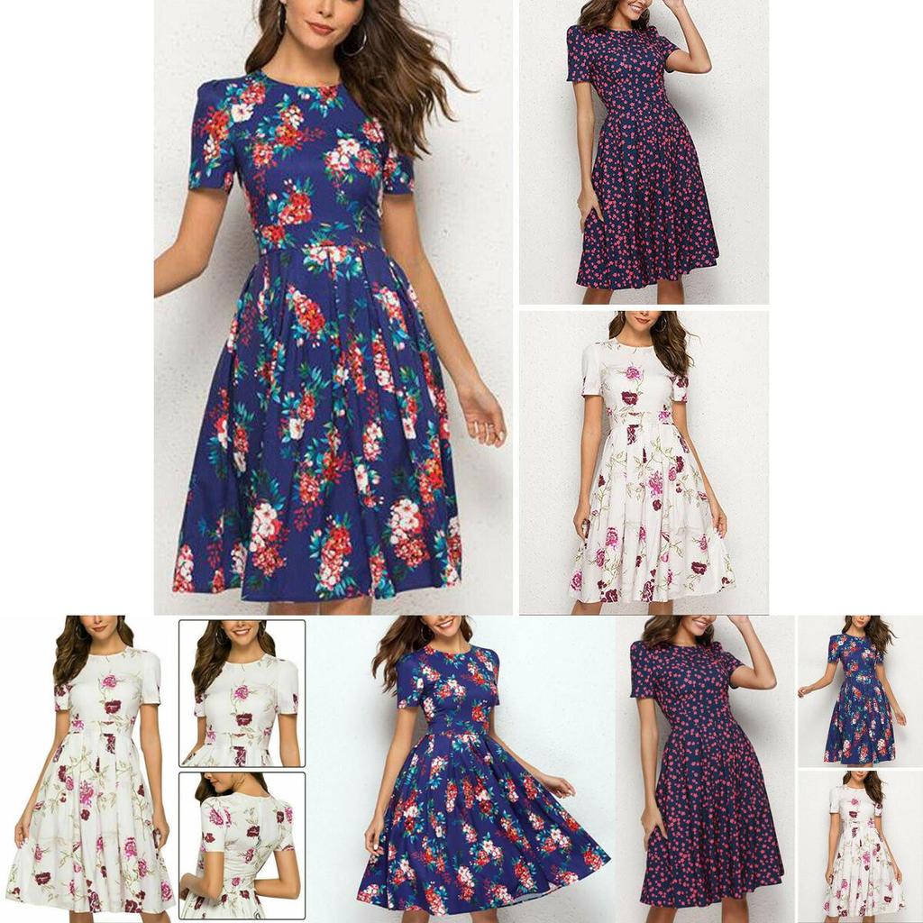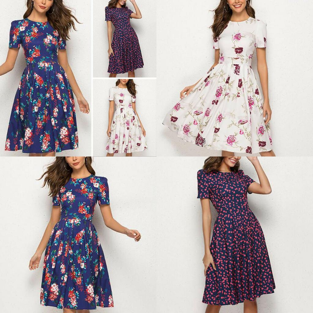 Летнее женское винтажное платье А-силуэта, туника с длинным и коротким рукавом, с цветочным принтом