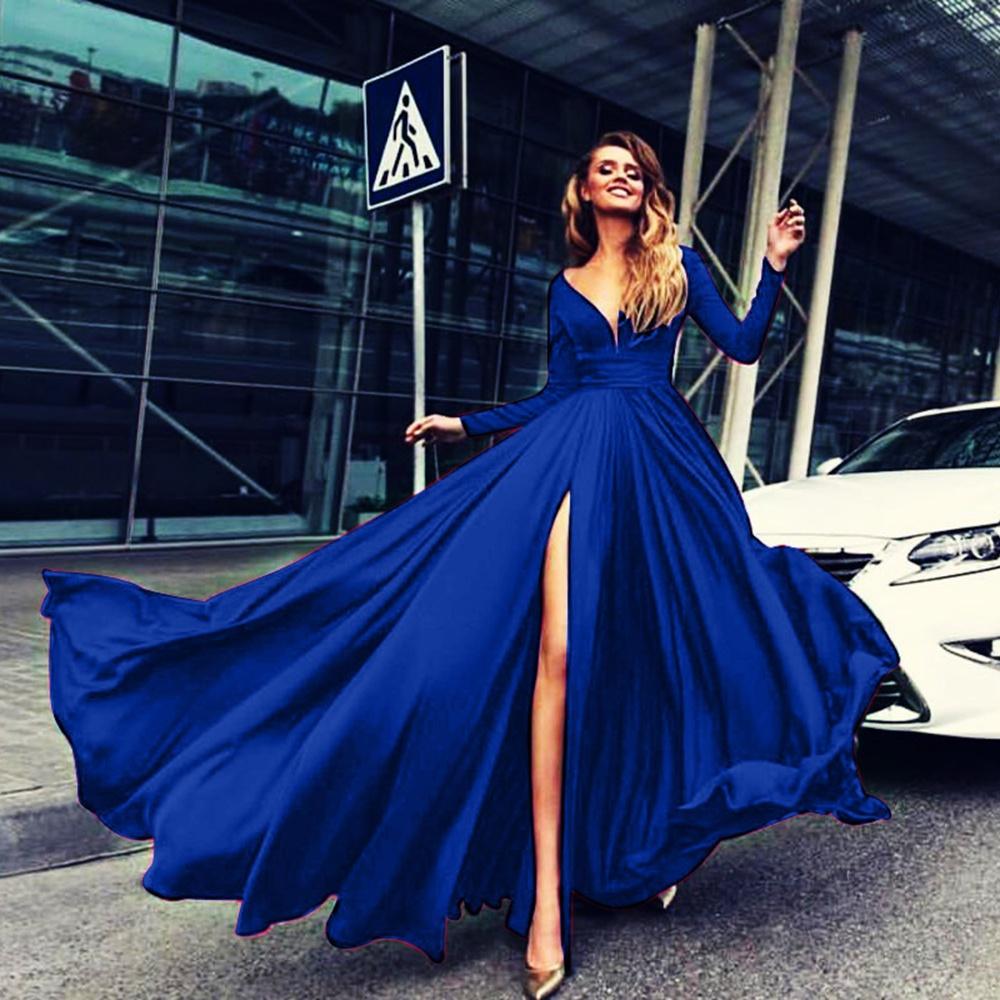 Женское платье для выпускного вечера с глубоким V-образным вырезом, длинными рукавами и разрезом, элегантное вечернее макси-платье для подружки невесты — купить товар онлайн с бесплатной доставкой по всему миру!