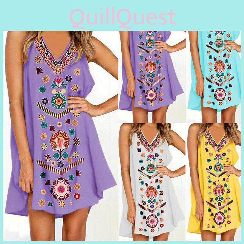 Женское Миди Платье Без Рукавов Бохо Пляж Повседневный Цветочный Сарафан Повседневное Платье