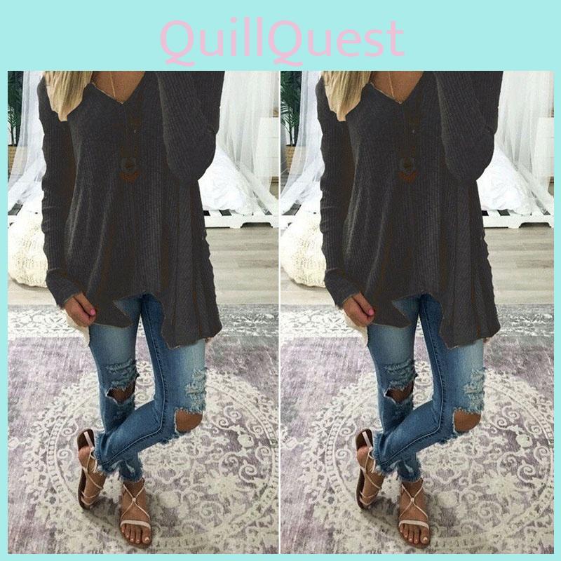 Элегантная женская блузка большого размера с длинным рукавом, свободного кроя, с мешковатым V-образным вырезом, туника, футболка — купить товар онлайн с бесплатной доставкой по всему миру!