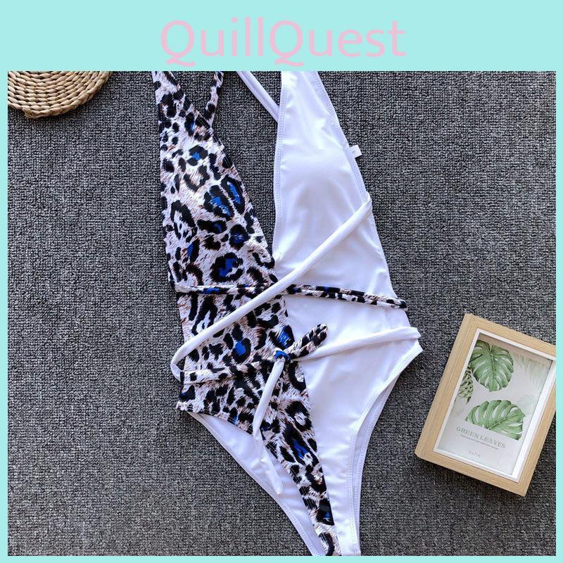 Роскошный леопардовый цельный купальник бикини, пэчворк, с подкладкой, глубокий V-вырез, на завязках халтер