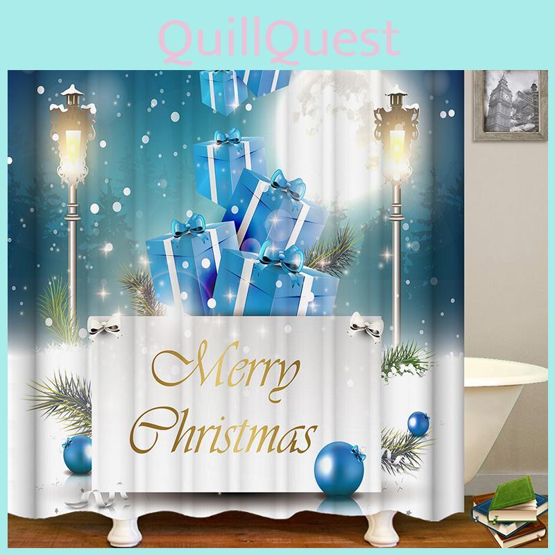 Праздничные рождественские подарочные коробки на занавеске для душа из водонепроницаемой ткани с крючками