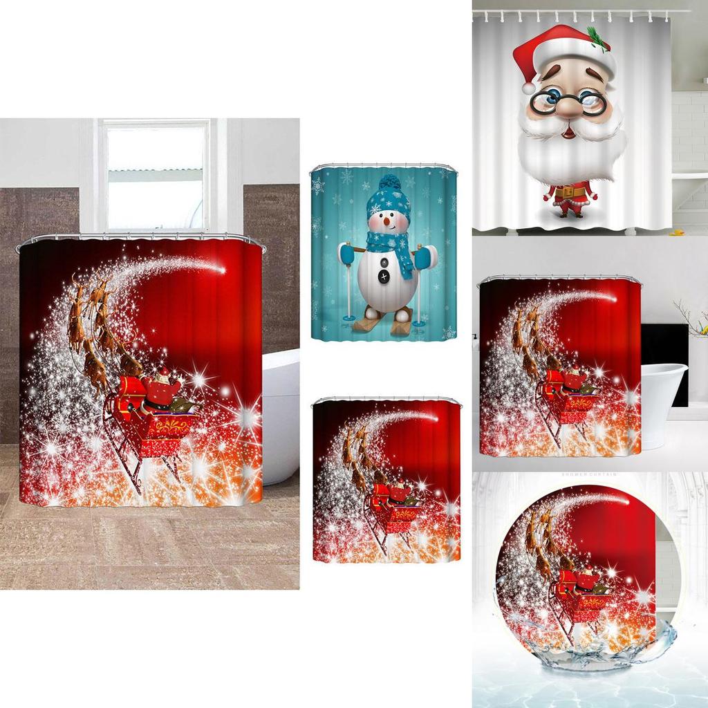 Рождественская водонепроницаемая шторка для душа премиум-качества с 12 крючками для праздничного декора