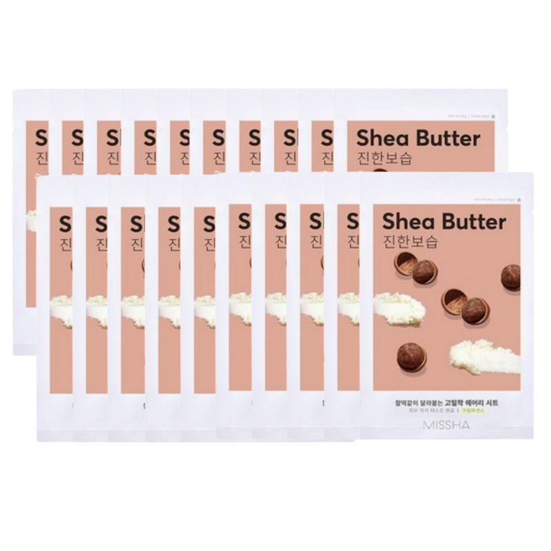 Это вариант «Масло ши» популярной тканевой маски MISSHA Airy Fit — набор тканевых масок (20 листов) обеспечивающий глубокое увлажнение и питание. Ультратонкая «воздушная» маска плотно прилегает к коже, как вторая кожа, позволяя насыщенным эссенциям глубоко проникать.. Разработан специально для сухой, тусклой или обезвоженной кожи, помогает восстановить мягкость, укрепить кожный барьер и сделать кожу гладкой и эластичной..