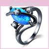 Stunning Opal Ring With Heart Shaped Blue Cubic Zirconia For Women In Vintage Style