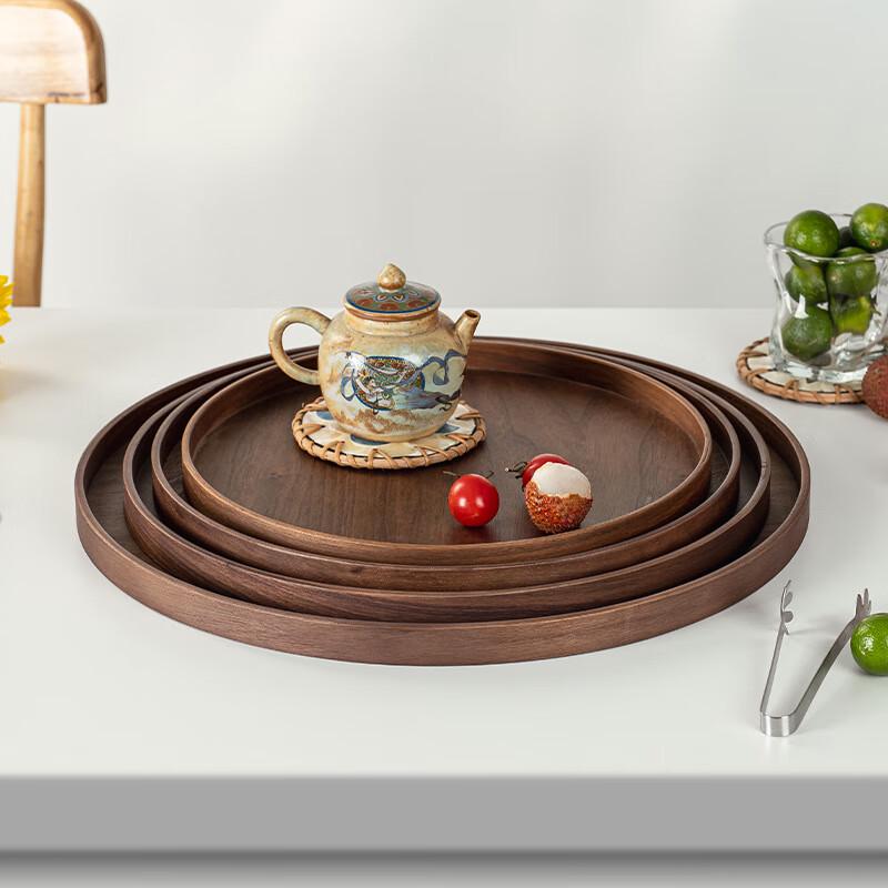 DH Черный орех Круглый поднос для подачи из массива дерева