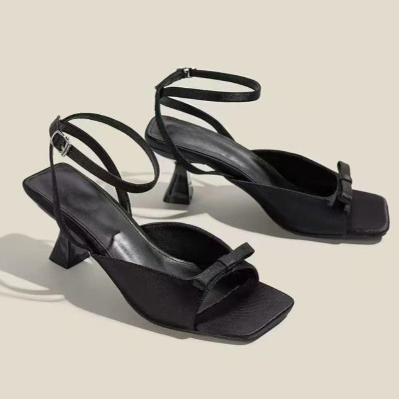 Мода 2025 Босоножки-стилетто Женские Летние Новые Квадратный носок Открытый носок Бант Слингбэк Противоскользящие Износостойкие Изящные Высокие каблуки