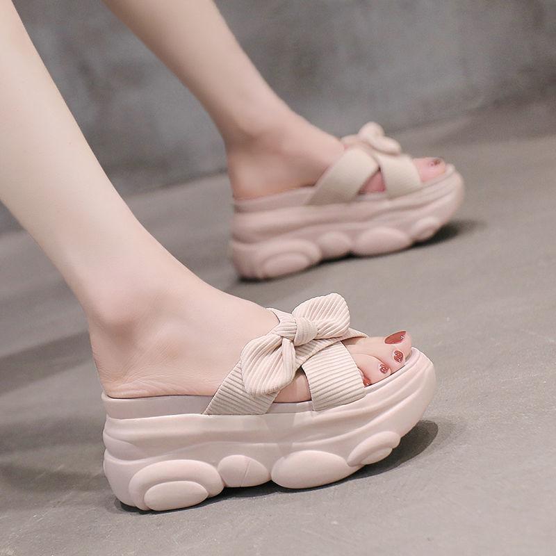 Модные женские шлепанцы и женские сандалии для улицы Каваи Обувь на каблуке Милые С бантом Шлепанцы Абрикосовый 39 Новый стиль Мода Роскошь Стильный