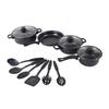 Комплексный многофункциональный набор из 13 предметов: Эта универсальная коллекция включает кастрюли, сковороды и шесть основных кухонных принадлежностей, удовлетворяющих потребности в жарке, кипячении и тушении.. Он легко адаптируется к различным стилям приготовления и рецептам, предоставляя все инструменты, необходимые для ежедневных кулинарных задач.