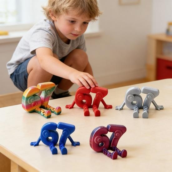Изготовленное с использованием передовой технологии 3D-печати, это настольное украшение 67 сделано из высококачественного, экологически чистого PLA, что обеспечивает гладкую, деликатную поверхность и прочную структуру.. Его уникальный дизайн креативно объединяет цифры «6» и «7» в воображаемую фигуру, где «6» образует голову, а «7» — тело и ноги, в результате чего получается визуально яркое и игривое украшение.