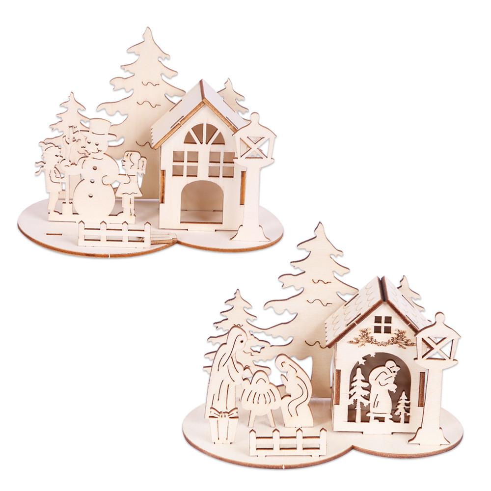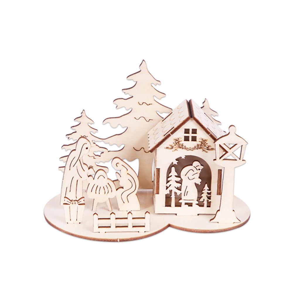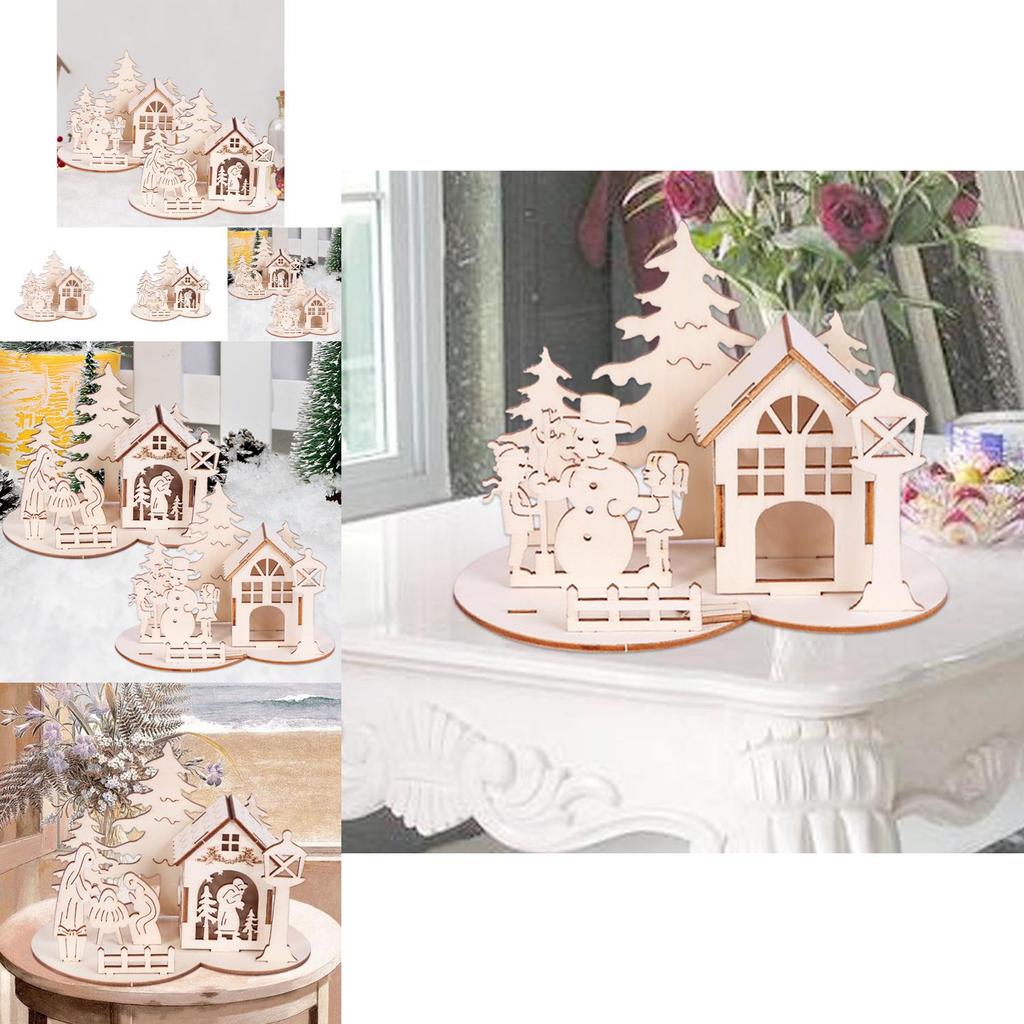Elegant Nordic 3d Wooden Christmas Tree House Puzzle Delightful Tabletop Decor