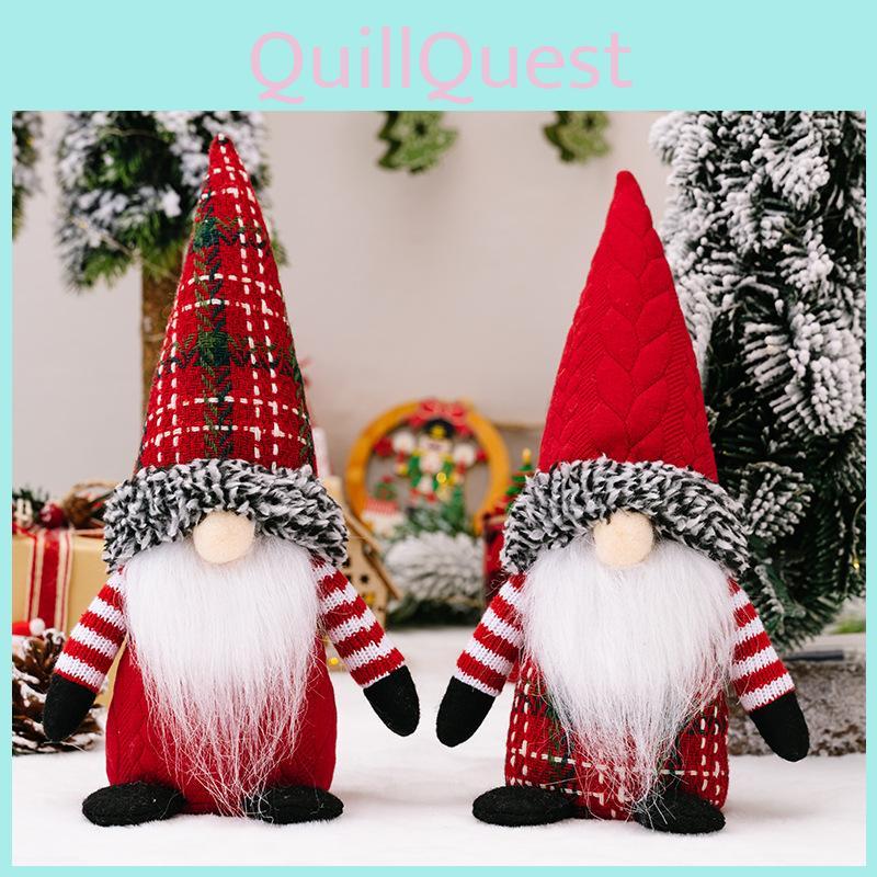 Charming Christmas Gnome Figurines With Cozy Plaid Hats Perfect For Festive Decorations