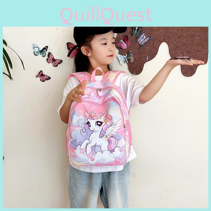 Cute Unicorn Pattern Lightweight Nylon School Backpack For Girls In Bright Colors