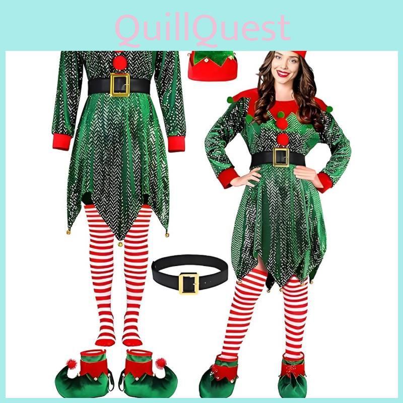 Восхитительный костюм эльфа для рождественской вечеринки для женщин с длинными рукавами и праздничным видом