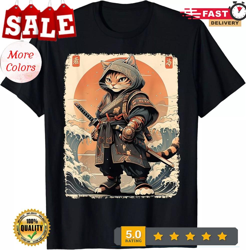 Самурай Кот Катана Полный Комплект Воин Боец Японское Искусство Подарок Унисекс Футболка