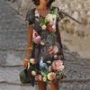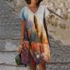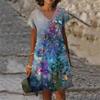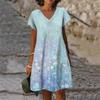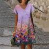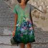 Растения Цветы Тай-дай Градиентный Принт Женское Платье Повседневное V-образный вырез Короткий рукав A-силуэт Платья Лето 2023 Новая Одежда Оверсайз