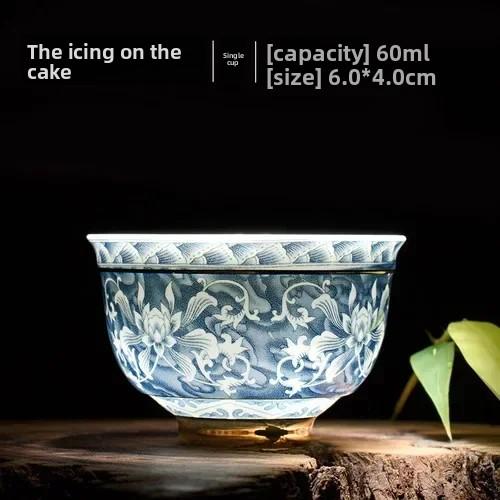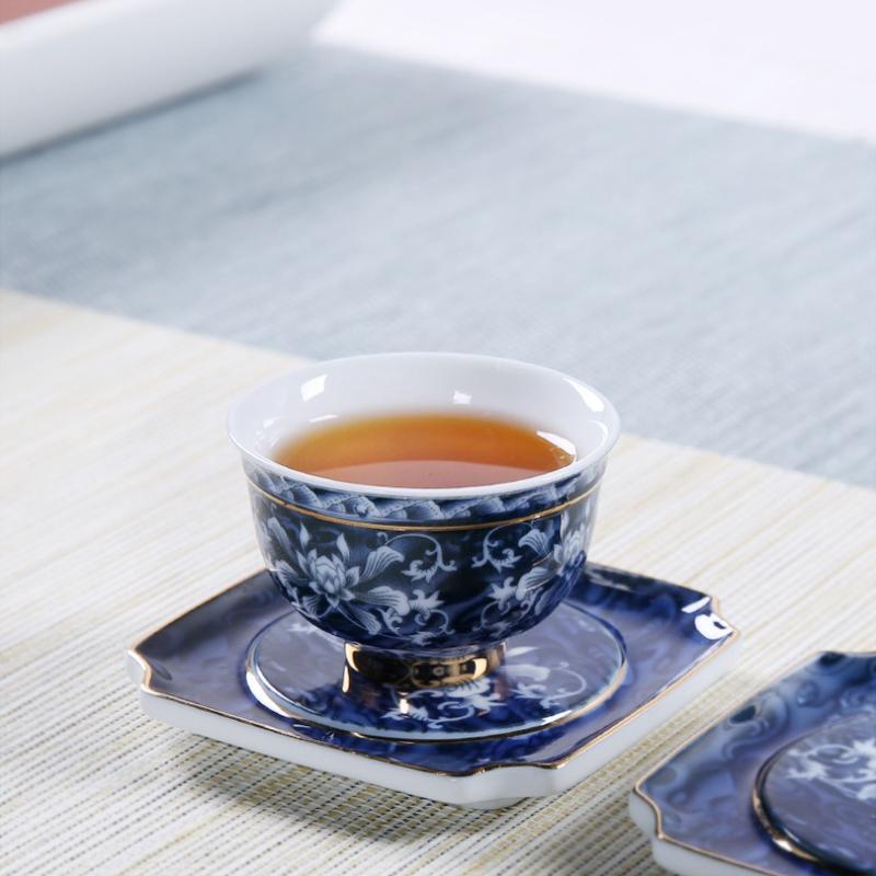 Винтажная чашка-мастер, 1 сине-белая фарфоровая чайная чашка, маленькая чайная пиала, керамический набор для кунг-фу, чайная пиала с золотой каймой, одинарная чашка