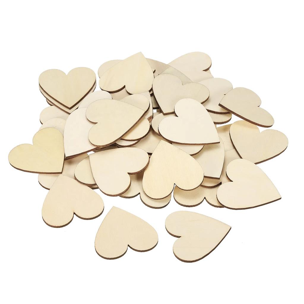 Деревянные сердечки 50/100 шт. Необработанные деревянные сердечки Пустые деревянные вырезки Украшения Кусочки натурального дерева для рождественских поделок