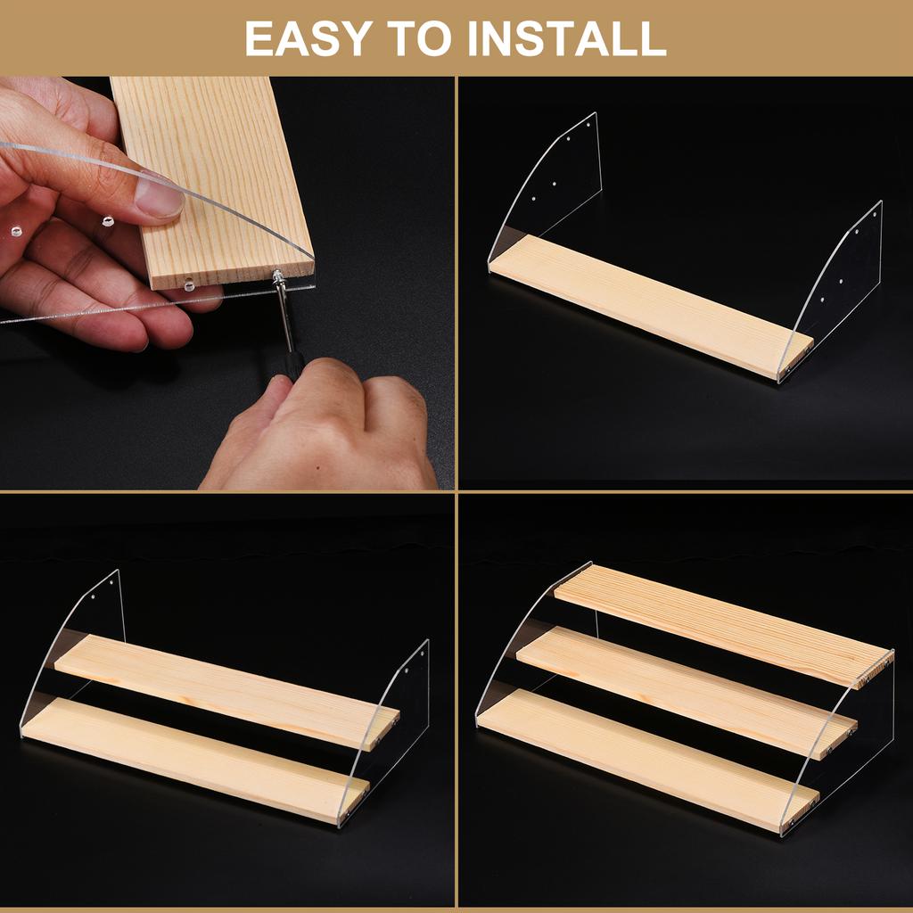 3-5-уровневая прозрачная акриловая основа, подставка-витрина из массива дерева, ступенчатая стойка-витрина для кексов, коллекционных предметов, фигурок, коричневая