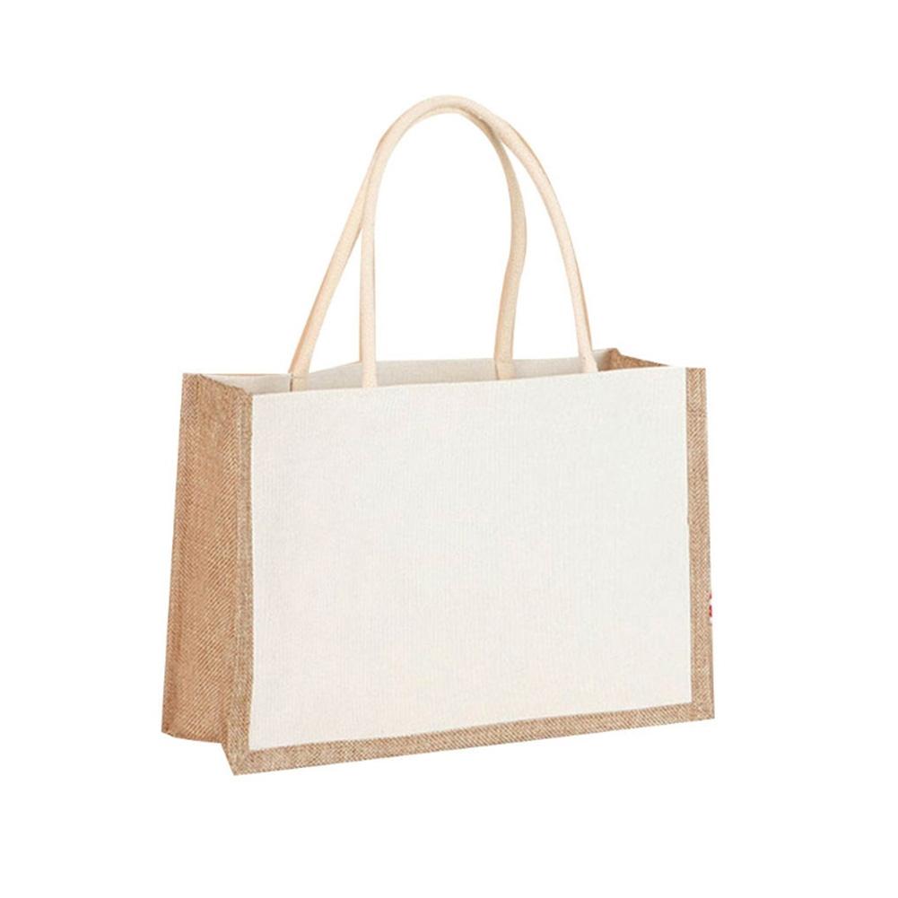 Многоразовая джутовая сумка-тоут из мешковины с прочной ручкой, женская повседневная, большой вместимости, для путешествий, пляжа, хранения, сумка-органайзер