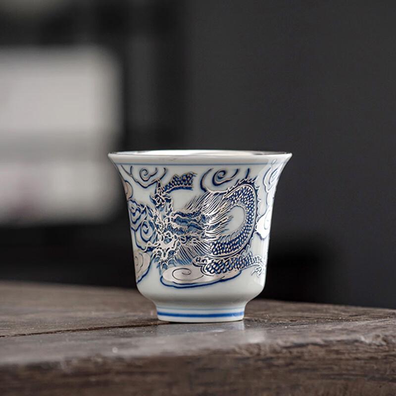 Su's Ceramic Dragon Gilded Silver Kung Fu Teacup