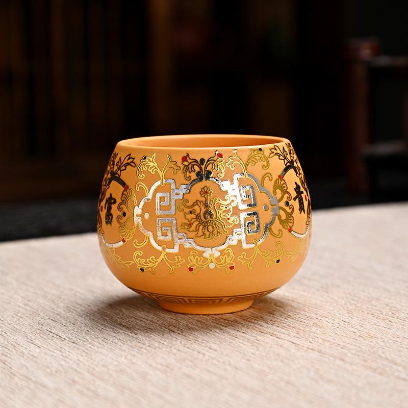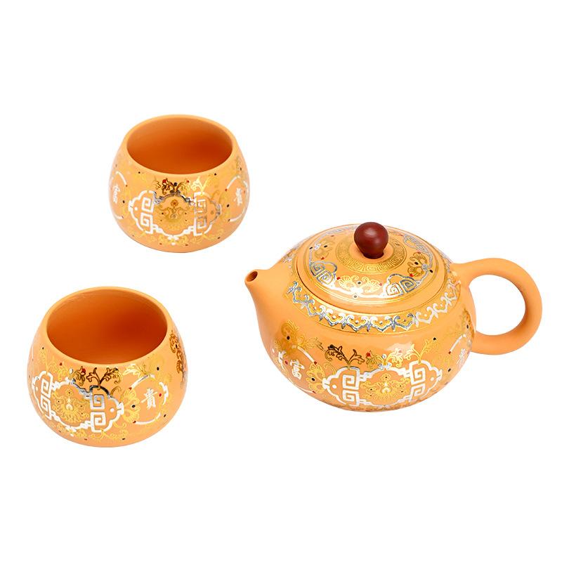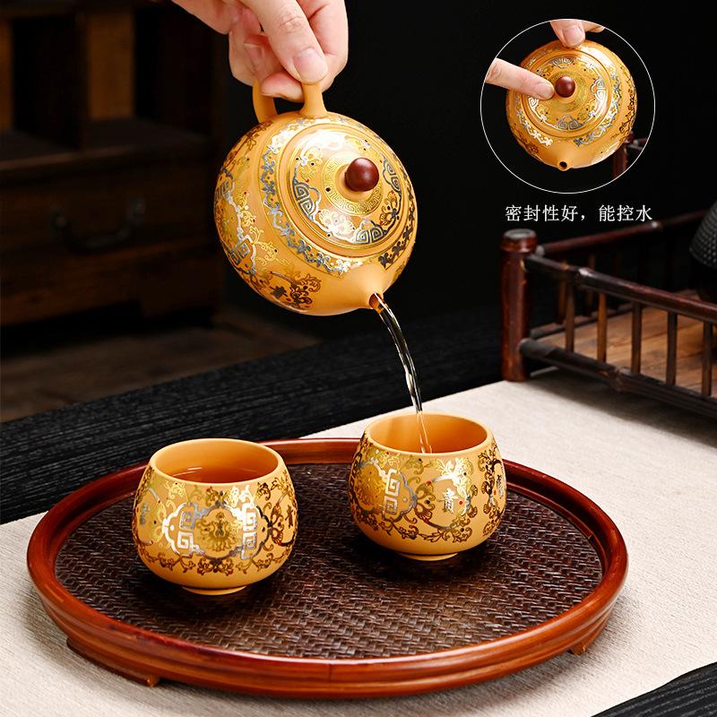 Gold Duan Mud Xishi Pot Gold and Silver Cuo Purple Sand Fengming Pot Tea Set Travel Portable Set