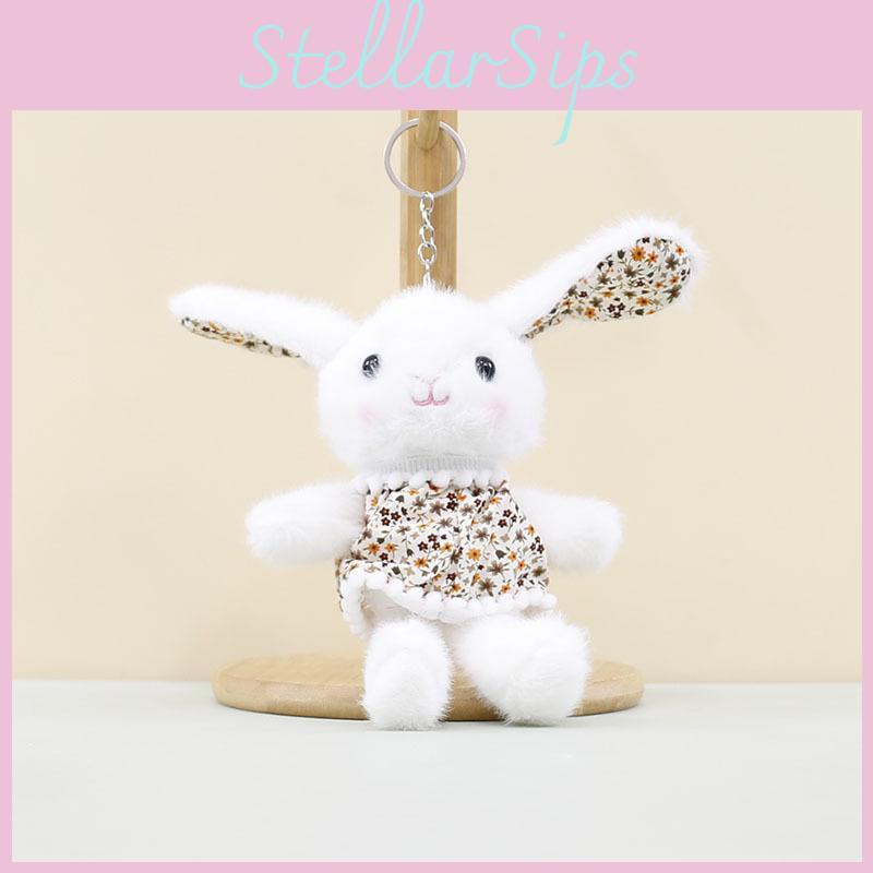 Очаровательный брелок-аксессуар в виде кролика из короткого плюша в милых цветочных дизайнах, идеально подходящий для сумок