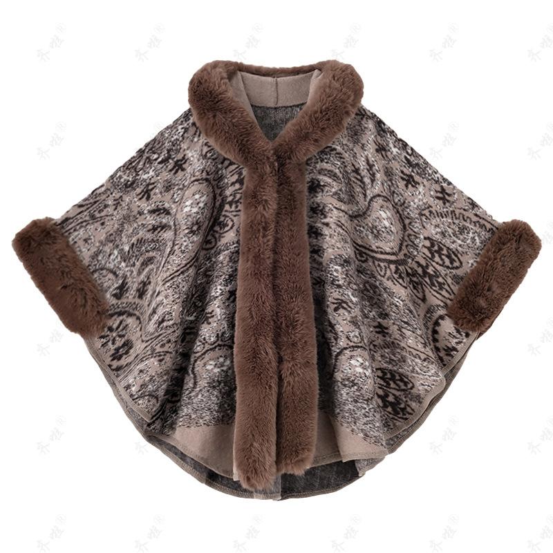 Теплая шаль из искусственного меха с принтом в стиле бохо для женщин. Мягкая, удобная и стильная накидка-пончо с большой накидкой с капюшоном. Роскошная меховая накидка для вечерней вечеринки.