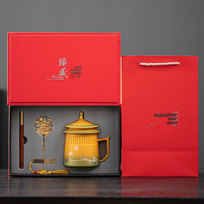Haofeng Auspicious Crane Ceramic Office Mug Gift Set