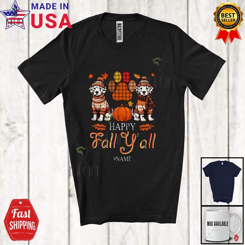Custom Name Happy Fall Amusing Thanksgiving Plaid Paws Dalmatian Owner T-Shirt