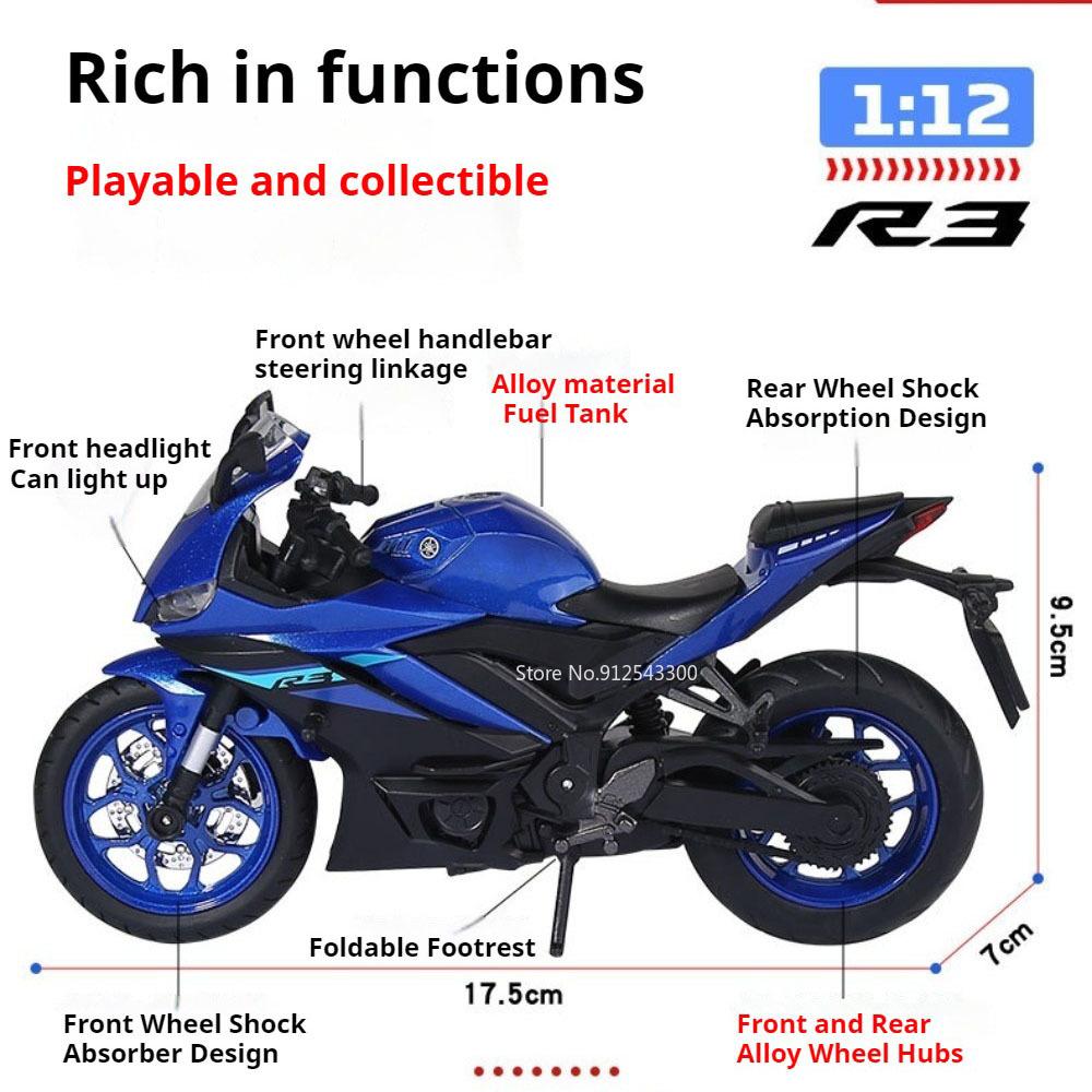 Scale 1:12 R3 V-REX Motorcycle Model Toy Car Metal Body Rubber Tires Linkage Steering Motor Models Children's Hobby Toys