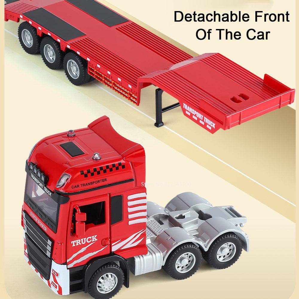 1:48 Flatbed Trailer Excavator Model Toy Car Sound Light Movable Joint Inertial Sliding Engineering Vehicles Boys Hobby Turcks
