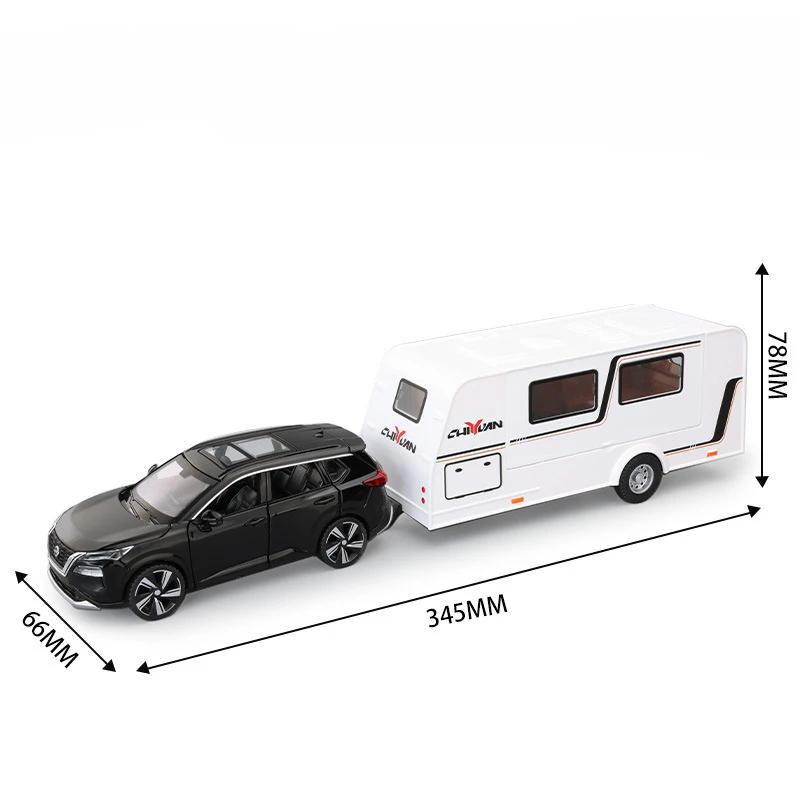 1:32 Camping RV X-Trail Trailer Model Toy Car Alloy Diecast Sound Light Doors Opened Truck Models Ornament Gifts for Children