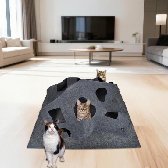 Прочный войлочный кошачий туннель с креативными смотровыми отверстиями предлагает бесконечное веселье для вашего кошачьего друга. Этот туннель, изготовленный из толстого, высококачественного войлока, сохраняет свою форму и выдерживает ежедневные царапины, обеспечивая долговечную игру..