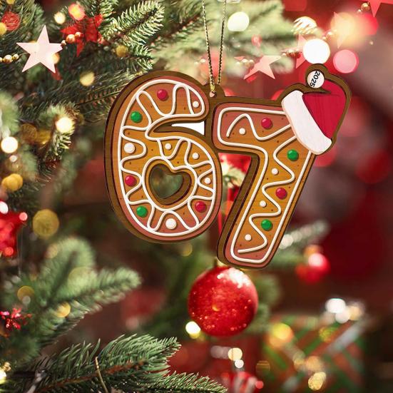 Элегантный дизайн 67: Этот орнамент с красивым детализированным мотивом «67» добавляет уникальный и праздничный штрих вашим рождественским украшениям.. Изящный стиль дополняет различные темы оформления, усиливая визуальную привлекательность вашей елки или экспозиции изысканным праздничным очарованием.