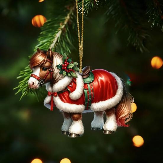 Это красиво выполненное украшение в виде лошади станет идеальным дополнением к вашим рождественским украшениям.. Отличаясь элегантными и реалистичными деталями лошади, он приносит радость любителям лошадей и добавляет нотку изысканности любому пространству.. Эта подвеска, оснащенная надежной петлей для подвешивания, легко выставляется на елках, гирляндах, подставках или рюкзаках..