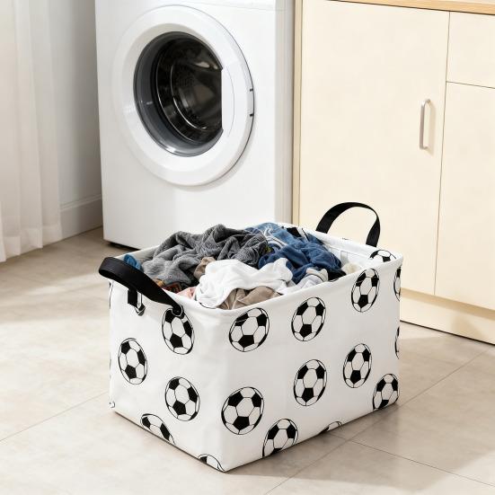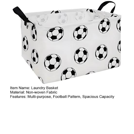 Портативные ручки и стильный внешний вид: Корзина с двумя прочными ручками сверху легко переносится и перемещается между комнатами. Его современный дизайн с футбольным принтом органично вписывается в различные интерьеры, служа как практичным решением для хранения, так и привлекательным минималистичным акцентом в ванных комнатах, спальнях или на балконах.