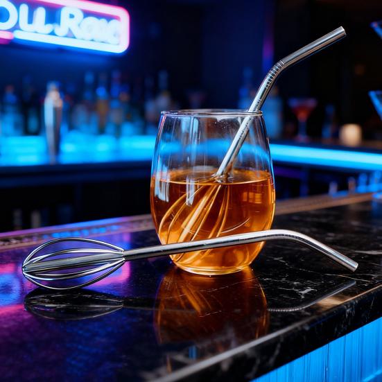 Инновационная функция «Два в одном»: Этот универсальный инструмент служит и питьевой соломинкой, и мешалкой для блендера.. Его многофункциональная конструкция упрощает кухонные задачи, позволяя смешивать ингредиенты прямо в чашке перед тем, как выпить, что экономит время и усилия.