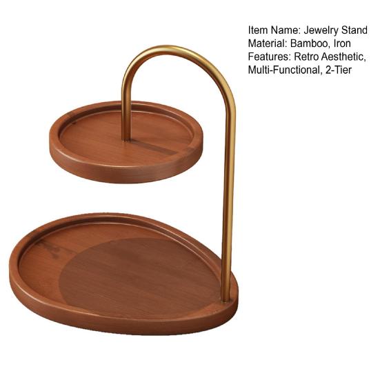 Двухуровневая подставка для украшений Деревянный органайзер для украшений с 2 подносами Ретро многоярусный поднос Держатель для украшений для ожерелий браслетов серег ключей часов