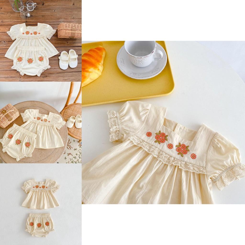 Cute And Comfortable Two Piece Baby Girls Floral Print Top And Shorts Outfit Set