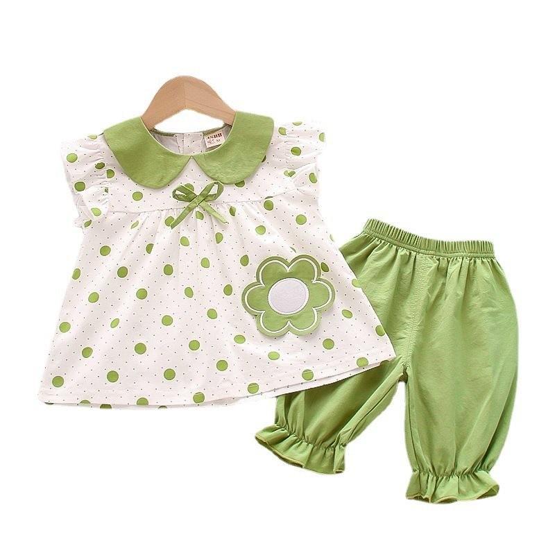 Представляем наш очаровательный летний костюм-двойку для девочек, созданный, чтобы принести радость и стиль в гардероб вашей малышки! Этот восхитительный набор идеально подходит для малышей в возрасте от 1 до 3 лет, с размерами, рассчитанными на рост от 80 см до 100 см.. Сделано с любовью из 95% мягкого хлопка, ткань нежна к молодой коже, обеспечивая комфорт во время игр и повседневных приключений. Этот наряд, отличающийся милой и игривой эстетикой, передает суть детства своими очаровательными цветочными и гороховыми узорами, которые непременно заставят вашу маленькую девочку сиять.