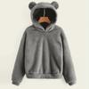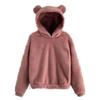 Женский модный свитер с длинным рукавом, однотонный, флисовый, с капюшоном и ушками, теплый